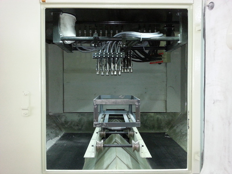 該設(shè)備是根據(jù)不銹鋼水槽產(chǎn)品特性而專門設(shè)計的(非標準型)轉(zhuǎn)動式自動噴砂機,完全適合購方所提供的產(chǎn)品。根據(jù)購方對產(chǎn)品效率的要求,設(shè)備采用轉(zhuǎn)動推車式噴砂機。